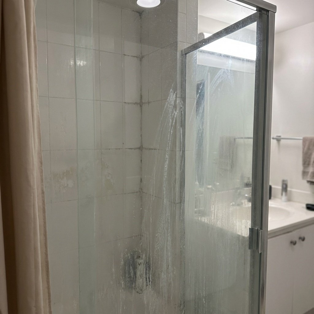 Shower glass and tiles are constantly exposed to water, soap, minerals, and humidity. Over time, this leads to: